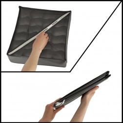Verstärkte Wände halten die Form und elastische Trennstege passen sich dem Inhalt an. Das atmungsaktive Vliesgewebe sorgt für Luftzirkulation und einfache Pflege. Wenn Sie den Organizer nicht benötigen, klappen Sie ihn flach zusammen und verstauen ihn platzsparend.