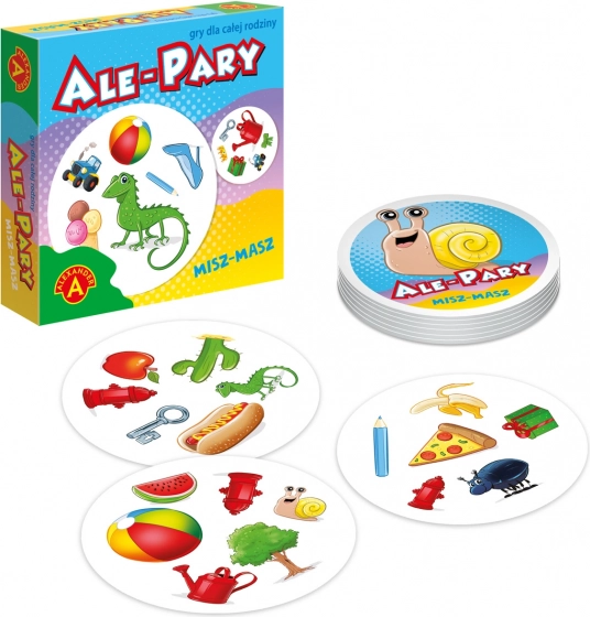Auf zwei beliebigen Karten findet sich immer genau ein übereinstimmendes Bild. Sucht es so schnell wie möglich und verschafft euch einen Vorteil gegenüber den Mitspielern.
