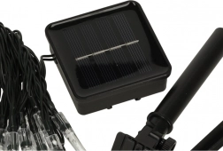 Dank 30 LEDs mit kaltweißem Licht kommt der dekorative Effekt nachts wie tagsüber zur Geltung. Die Kette ist wetterfest (IP65) und eignet sich für Balkon, Pergola, Terrasse sowie für Büsche und Bäume. Im Lieferumfang ist zudem ein Erdspieß für die einfache Platzierung des Panels im Garten enthalten.