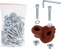 Die Montage ist einfach und schnell – im Paket ist ein komplettes Set an Montagezubehör enthalten. Die Griffe haben eine grobe Oberfläche für festen Halt und abgerundete Kanten für mehr Sicherheit. Ideal für Heim-Kletterwände, Gartenklettergerüste und Kinderzimmer.