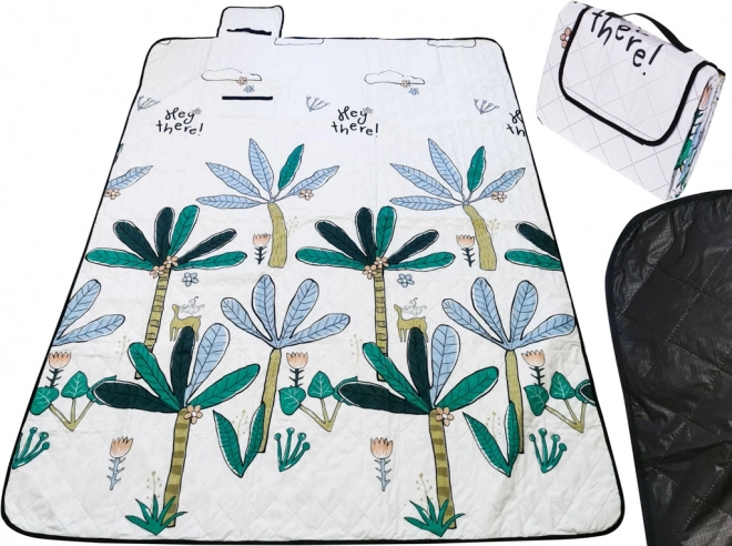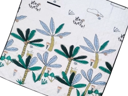 Mit Palmen-Design in verschiedenen Grüntönen und Blau auf weißem Hintergrund bringt die Decke einen spielerischen Look zu jedem Picknick oder Strandbesuch.