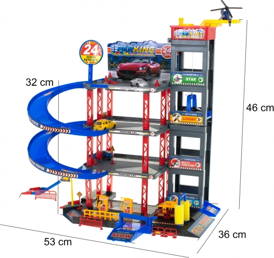 Mit mehreren Parkebenen, Spielmöglichkeiten für Autos und Hubschrauber bietet das Parkhaus unbegrenzten Spaß und Möglichkeiten zur Entwicklung der kindlichen Fantasie.