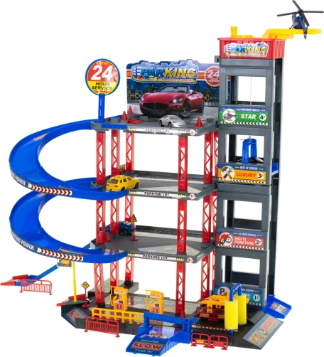 Mehrstöckiges Parkhaus ist das perfekte Spielset für alle kleinen Autoliebhaber. Es bietet großen Spaß und Möglichkeiten zur Entwicklung der motorischen Fähigkeiten der Kinder.