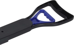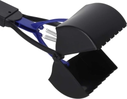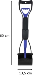 Praktische Hundekotschaufel für schnelles, sauberes und hygienisches Aufnehmen auf Spaziergängen. Der klappbare Griff schont den Rücken, die leichte Konstruktion lässt sich bequem handhaben und die Mehrfachverwendung schont Geldbeutel und Umwelt. Hergestellt aus robustem Kunststoff, leicht abwaschbar. Erhältlich in der Farbkombination Schwarz‑Blau.