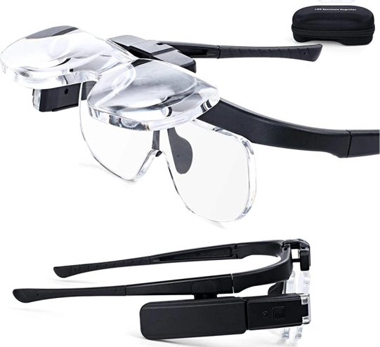 Stirnlupe-Brille mit LED-Beleuchtung und austauschbaren Linsen 1,5x–4,5x