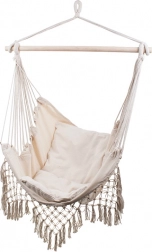 Brasilianischer Hängesessel mit Kissen, Boho, beige
