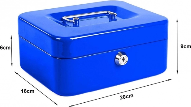 Metall-Geldkassette für Geld und Dokumente 20 × 16 × 9 cm – blau