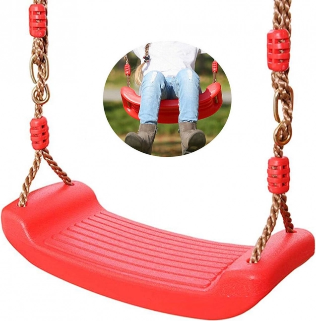 Diese robuste Gartenschaukel bietet komfortables und sicheres Schaukeln drinnen und draußen. Der Sitz aus hochwertigem Kunststoff hat eine rutschhemmende Struktur für mehr Stabilität, und die Seile mit festen Aufhängungen sorgen für zuverlässiges Befestigen an Baum oder Konstruktion.