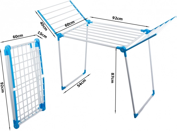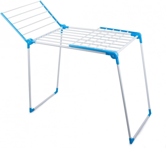 Der große Wäscheständer bietet Platz für bis zu 13 Meter Wäsche dank der soliden, kippsicheren Konstruktion. Er ist mit 2 unabhängigen Flügeln mit je 5 Stäben sowie einer Hauptablage mit 8 Stäben ausgestattet. Durch die emaillierten, glatten Stäbe rutscht die Wäsche nicht und lässt sich gleichmäßig verteilen.