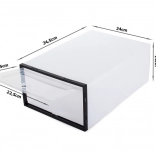 Der praktische Schuh-Organizer mit transparenter Klappe hilft Ihnen, Ordnung zu halten im Schrank und in der Garderobe. Die Boxen lassen sich miteinander verbinden und zu modularen Schränken stapeln, je nach Platz. Dank der Belüftungsöffnungen bleibt das Schuhwerk frisch und durch den transparenten Deckel finden Sie immer schnell, was Sie brauchen.