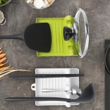 Der Löffel- und Deckelabtropfer ist ein idealer Helfer für jede Küche. Sie können ihn verwenden, um bis zu vier Löffel und Deckel zu lagern, was sicherstellt, dass all Ihre Küchenwerkzeuge an ihrem Platz bleiben.