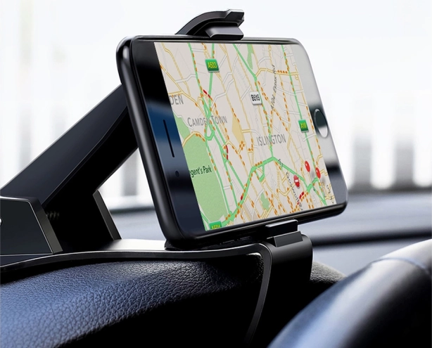 Der universelle Telefonhalter für das Armaturenbrett ist so konzipiert, dass er in die meisten Fahrzeuge passt und eine sichere Installation Ihres Smartphones gewährleistet. Dank der einfachen Montage und der Klemmen mit Gummibeschichtung sorgt er für festen Halt und einfache Handhabung.