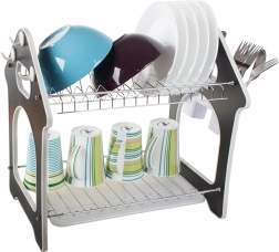 Die obere Ebene für Teller und die untere für Schüsseln, Tassen und Gläser. Fasst bis zu 14 Teller sowie weiteres Geschirr, damit die Küche organisiert bleibt.