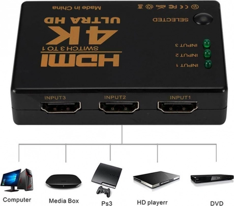 - 3 Eingänge / 1 Ausgang – ideal für TVs mit wenigen HDMI-Ports.