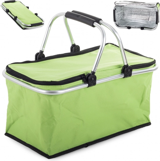 Thermischer Picknickkorb mit Isolierung und klappbaren Griffen – Grün