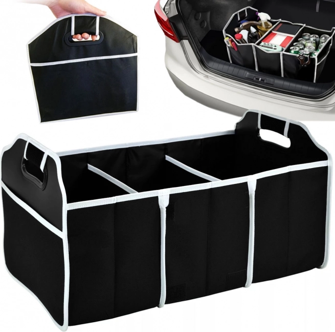 Halten Sie Ordnung im Kofferraum mit dem praktischen Organizer mit 3 geräumigen Fächern und 4 Taschen. Leichtes und robustes Material sorgt für lange Lebensdauer, stabile Griffe für bequemes Tragen und die faltbare Konstruktion spart Platz, wenn er gerade nicht benötigt wird.