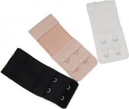 Praktisches 3er-Set BH-Verlängerer in Weiß, Schwarz und Beige. Bietet eine zweireihige Einstellung zur schnellen Erweiterung des Unterbrustumfangs und ein elastisches Design für mehr Komfort. Einfache Montage in Sekunden – ohne einen neuen BH kaufen zu müssen.