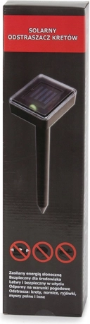 Der solarbetriebene Vertreiber schützt Rasenflächen, Beete, Obstgärten und Gewächshäuser vor Maulwürfen, Wühlmäusen und Feldmäusen. Der integrierte Generator sendet alle 30 Sekunden Störsignale von 400–10000 Hz, begleitet von Vibrationen, die Schädlinge effektiv aus dem geschützten Bereich vertreiben. Dank Solarbetrieb funktioniert er vollständig ohne Kabel und ohne auszutauschende Batterien.