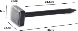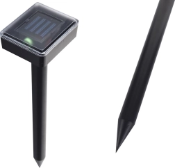 Das Gerät wird über ein Solarmodul betrieben und benötigt daher weder Kabel noch einen Batteriewechsel. Die robuste, wasserfeste Konstruktion gewährleistet einen zuverlässigen Betrieb während der gesamten Saison unter verschiedenen Witterungsbedingungen. Die Installation dauert nur einen Moment – einfach in den Boden stecken und arbeiten lassen.