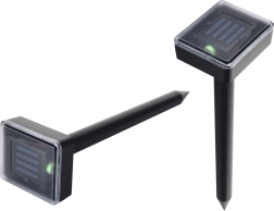 Effektiver Schutz vor Maulwürfen, Wühlmäusen und Feldmäusen ohne Gifte und Fallen. Der integrierte akustische Generator sendet alle 30 Sekunden Störsignale von 400–1000 Hz zusammen mit Vibrationen, die ihre Orientierung stören und sie veranlassen, das geschützte Gebiet zu verlassen.
