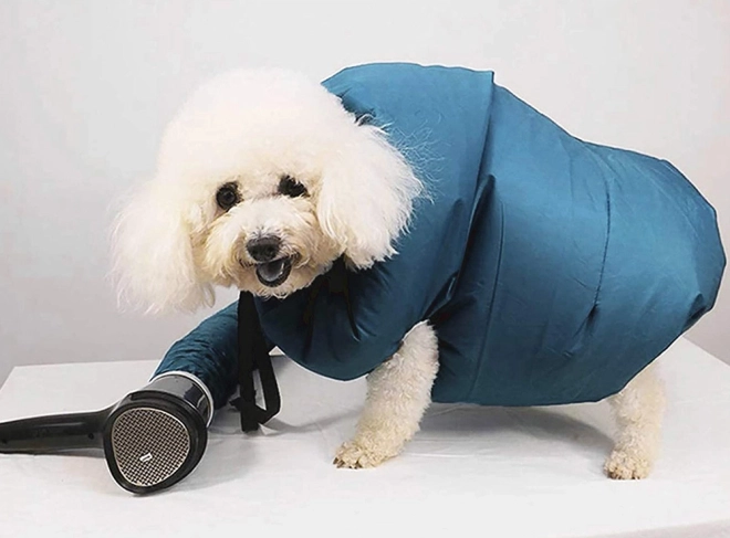 Trocknungsjacke für Hunde mit Schlauch zum Föhn