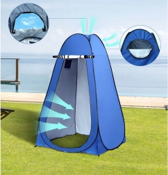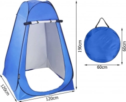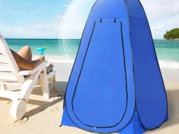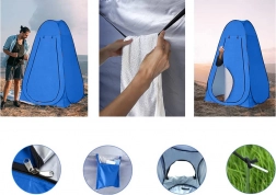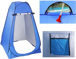 Selbstaufbauendes Strandzelt und Umkleidekabine mit Dusche und WC, blau