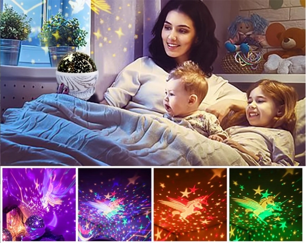 Schaffen Sie zu Hause eine beruhigende Atmosphäre mit diesem Projektor, der Nachtlicht und eine 360° rotierende Projektion von Sternen und Mond kombiniert. Er bietet warmes weißes Licht, wechselnde Farben und Stromversorgung über USB oder Batterien – ideal für Kinderzimmer, Schlafzimmer und Wohnzimmer.