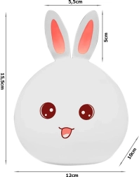 Der superweiche Silikonhase dient als beruhigendes Nachtlicht und kuschelige Deko. Die Farben lassen sich einfach per Berührung oder leichtem Klopfen wechseln, sodass das Kind selbst seinen Lieblingsfarbton wählen oder den sanften RGB-Modus aktivieren kann. Das Gehäuse ist angenehm zu berühren, reißfest und leicht abwaschbar.