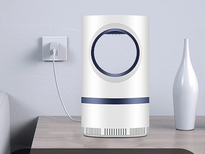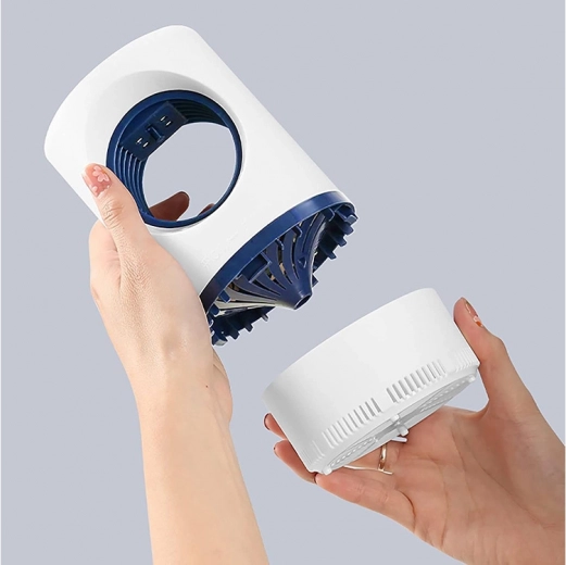 Der abnehmbare Auffangbehälter ermöglicht eine schnelle und hygienische Reinigung ohne direkten Kontakt mit Insekten. Die USB-Stromversorgung bietet flexible Platzierung – Powerbank, Adapter oder USB-Port genügen. Das elegante Design in Weiß und Dunkelblau passt in jedes Interieur.