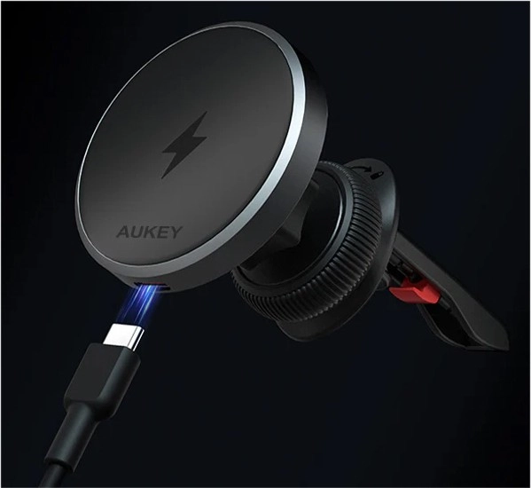 Magnetic car mount with 15 W wireless charging AUKEY Qi2 (black)
