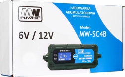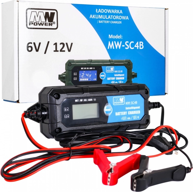 Compact and reliable charger with an LCD display for 6V and 12V lead-acid batteries (WET, GEL, AGM). Offers selectable charging current 1A/4A, microprocessor control, battery status diagnostics, and a desulfation mode to restore capacity. Ideal for motorcycles, cars, boats, and garden equipment.