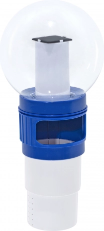 A smart 2-in-1 solution for any backyard pool: the Bestway floating pool chemical dispenser ensures even release of chlorine or bromine tablets and also lights up the water surface in the evening with a pleasant LED glow. The solar panel charges during the day, so you don’t need any cables or replaceable batteries.