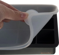 Discover the convenience of making ice with a quality silicone tray with lid. The soft yet durable silicone enables quick, hassle-free cube release, while the sealing lid prevents water spills and protects contents from unwanted freezer odors. Extra-large 32 × 32 × 32 mm cubes melt more slowly and keep your drinks colder for longer.