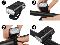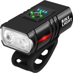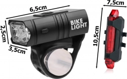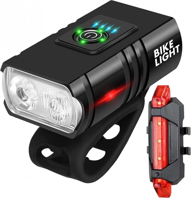 Complete bicycle light set, ideal for ensuring safety and visibility when riding in low-light conditions. The set includes a modern bike light with an adjustable lens and an additional rear light, both rechargeable via a USB cable. Connect them to a computer, car charger, or power bank. The front light has a charging indicator, so you’ll always know the battery status.