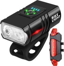 - Includes front and rear lights with multiple lighting modes, including steady and flashing modes.