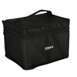 A complete set in a durable fabric case with a plastic stand for organized storage and easy transport.