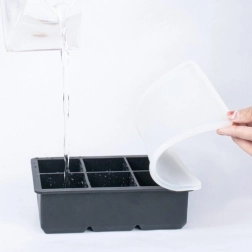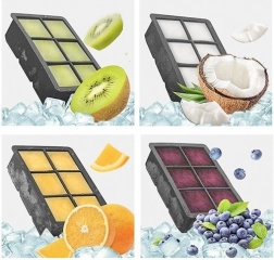 Transparent lids with precisely shaped edges prevent spills and keep the mold stable in the freezer. This ensures evenly shaped ice.