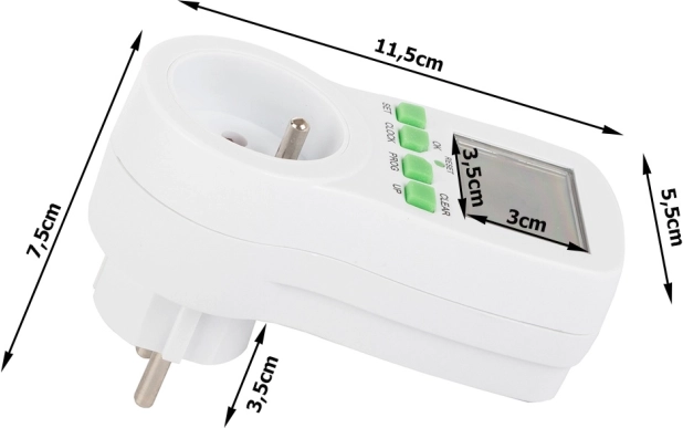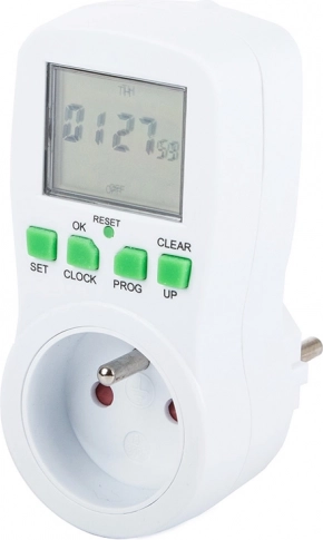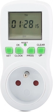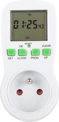 The digital plug-in timer switch is ideal for lamps, heating, aquariums, fans, or chargers. With 16 on/off programs, you can easily set a weekly schedule and let the timer work for you. An integrated battery preserves settings even during a power outage, and the clear LCD display with simple buttons speeds up setup.