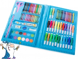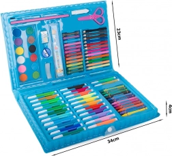 A complete art set in a practical carry case includes everything children and beginner artists need for drawing and painting: colored pencils, markers, oil pastels, watercolor paints and handy accessories. With 86 pieces and a clear layout, you will have everything at hand at home and on the go.