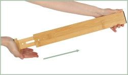 The bamboo dividing partition not only keeps your drawers organized but adds an aesthetic look as well. The partition is equipped with protective pads on the edges, which protect the drawer from scratches and prevent the organizer from moving when pulling it out. Usage is very simple - just choose a drawer, compress the partition to the smallest size, and place it where needed. The product automatically adapts to the shape of your drawer.