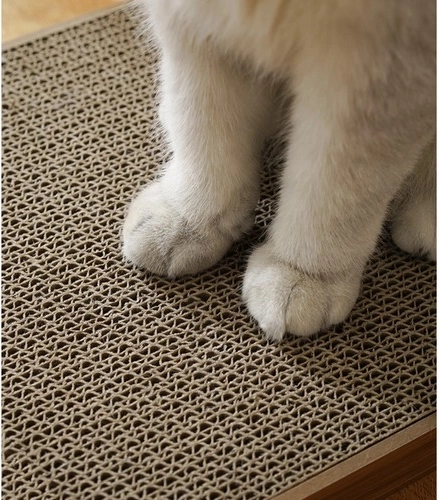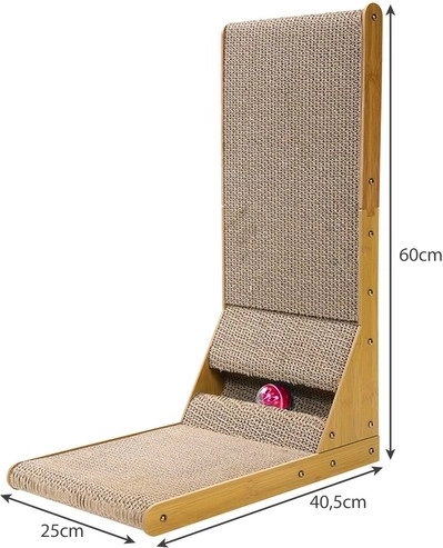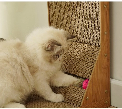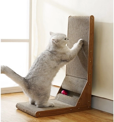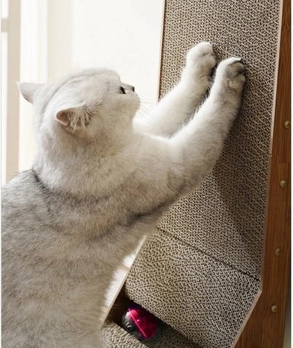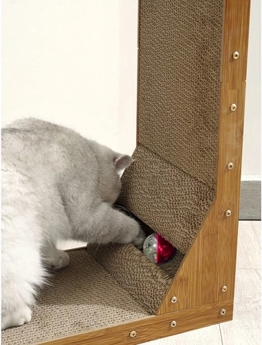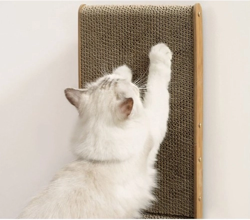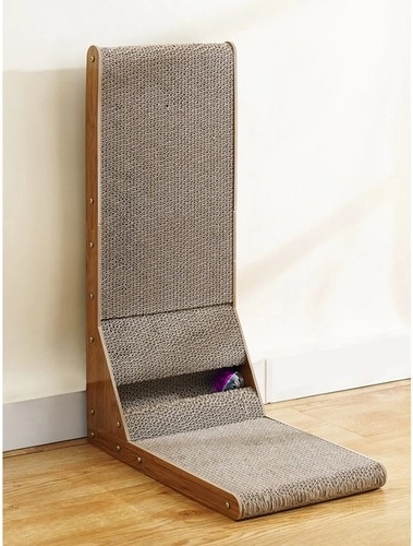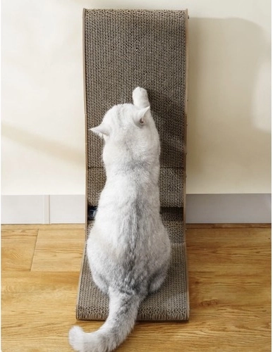 This scratching panel combines horizontal and vertical surfaces, allowing cats to rub and scratch as they please.
