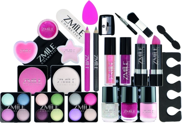 - Complete kit: eyeshadows, nail polishes, eye and lip pencils, glosses, lipsticks, applicators, mirror