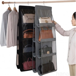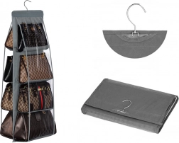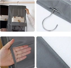 Enjoy a tidy wardrobe and perfect organization with this hanging organizer for handbags. Ideal for saving space in small apartments and easy storage of handbags and other items.