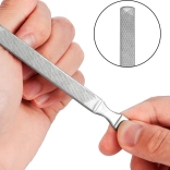A textured file shapes and smooths edges, while the cuticle pusher and elevator ensure a precise manicure and pedicure finish.