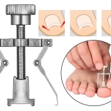 A screw mechanism and hooks gently lift the nail edges to help relieve pressure and support proper growth.