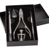 - Nail clippers, ingrown nail corrector, file, cuticle pusher, ingrown nail elevator, case