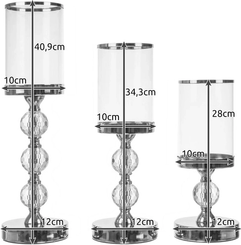 - Candle holders of various heights (28 cm, 34.3 cm, and 40.9 cm) allow for creative placements for maximum decorative effect.