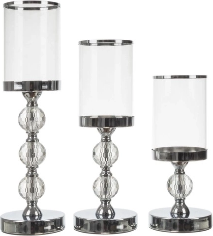 Decorate your home with an elegant set of 3 Glamour candle holders. Each holder is made from a combination of metal and glass, ensuring high quality and aesthetic appeal.