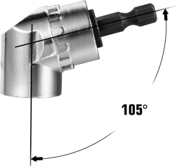The 105° angled head allows screwing and drilling in corners, under shelves, and behind obstacles where standard tools fail.