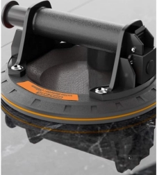 The suction cup ensures safe grip and handling of objects weighing up to 200 kg, ideal for use on smooth and flat surfaces such as glass or metal.